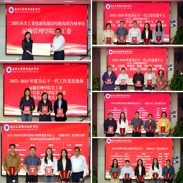 会议传达了江苏省教育系统关工委文件精神。关工委常务副主任周传林代表学校关工委作年度工作报告,全面总结过去一年工作成效,并对下一阶段重点工作进行了部署。会议隆重表彰近两年关心下一代工作多项先进集体和个人,运输管理学院关工委作为获奖代表交流工作经验。