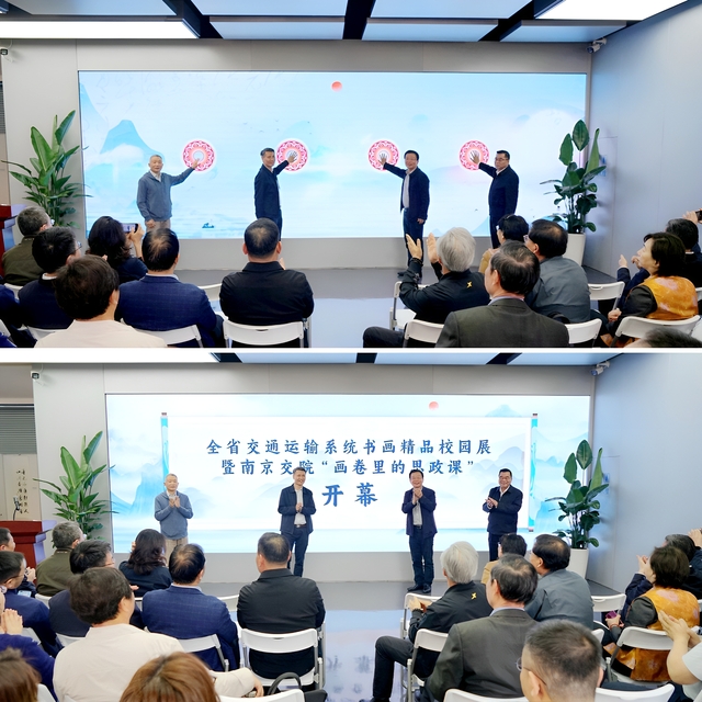 书画展区集中展出全省交通系统精选的120余幅作品及南京交院师生30余幅青春笔触,涵盖书法、国画、雕塑等门类,既有“逢山开路、遇水架桥”的豪迈题词,也有描绘美丽乡村路的工笔佳作,吸引师生驻足品鉴。本次作品展展览期间,马克思主义学院将组织大中小学思政一体化教学活动,以及思政课实践教学活动。全校万名师生也将走进展厅,感受书画的艺术魅力,领悟书画中的人生哲理。
