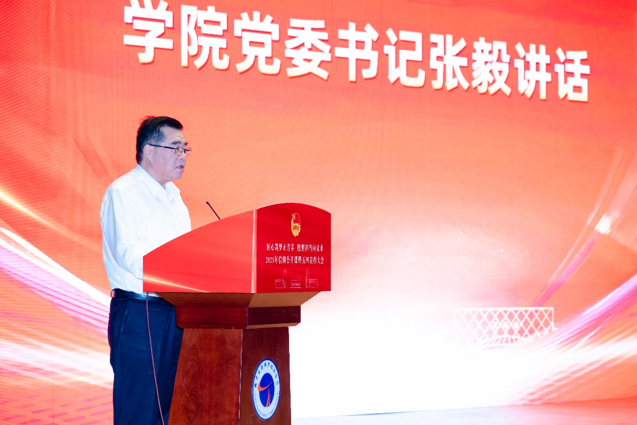 为深入贯彻落实习近平总书记关于青年工作的重要思想,5月7日下午,学院在图书馆报告厅举行“匠心筑梦正青春 挺膺担当向未来”2025年信仰公开课暨五四表彰大会,纪念五四运动106周年,表彰先进青年典型,传承五四精神。学院党委书记张毅、院长王道峰、副书记文爱民、副院长刘雪芬,相关部门负责人,各院系党总支副书记、分团委书记与500余名青年师生代表齐聚一堂,共赴青春之约。