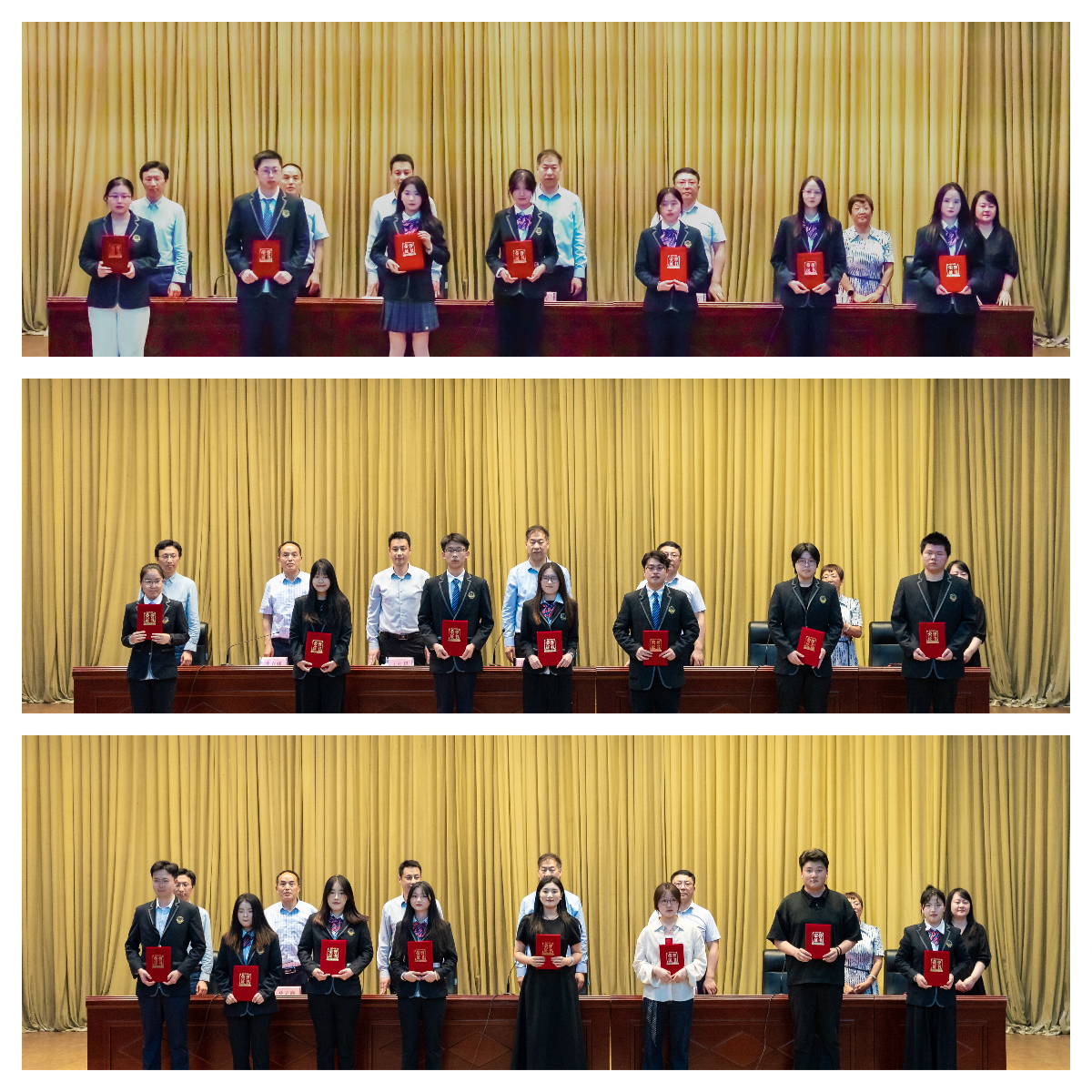 王红星处长宣读了《关于表彰2025届优秀毕业生的决定》,主席台领导为受表彰的毕业生代表颁发了荣誉证书;史立峰书记宣读了《运输管理学院关于聘任2025届毕业生校友联络大使的决定》,主席台领导为14名校友联络大使颁发了聘任证书。
