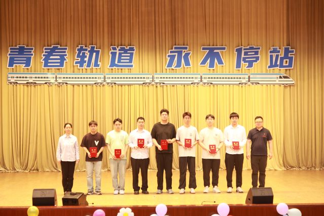 轨道交通学院院长沈丽琴宣读《轨道交通学院2025届毕业生校友信使名单》,并为校友信使代表颁发聘书。学生工作处处长王红星宣读《关于表彰优秀毕业生的决定》,在热烈的掌声中,优秀毕业生依次上台领奖,手中的证书不仅是荣誉的象征,更是对拼搏岁月的肯定。