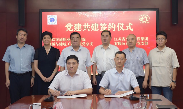 江苏省交通工程集团有限公司第一党支部书记张峰与路桥与港航工程学院党总支副书记郭振华分别介绍各自党组织的基本情况,并在党建共建、交流合作、人才培养等方面达成合作意向。随后,双方举行了共建协议签约仪式。