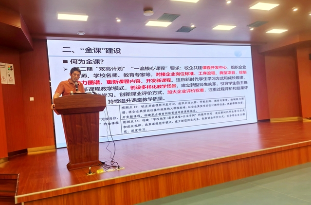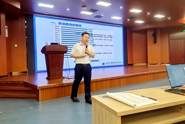 党委副书记文爱民教授以新时代高职教育发展前景和提升教师队伍整体素质为目标,作了“骨干教师的能力要求与培养途径探索”专题讲座,讲座深刻剖析了当前职教改革的要义,并着重阐述了骨干教师应具备的核心素养与能力提升路径,为教师队伍建设提供了明确的指引。