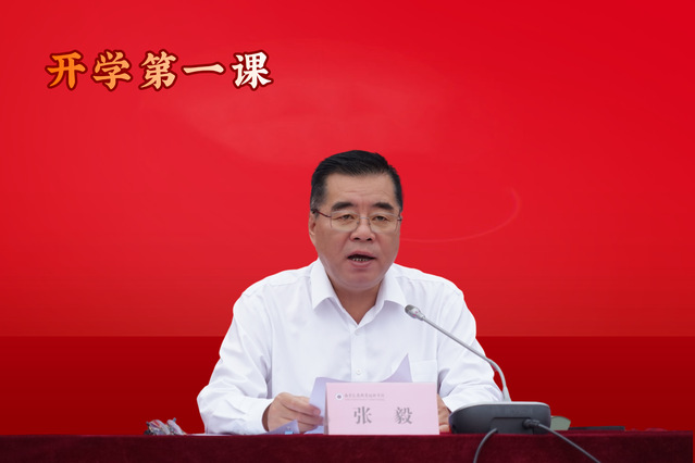 结合中国人民抗日战争暨世界反法西斯战争胜利80周年时间节点,张毅书记为新生们讲授“开学第一课”,从四个维度为新生搭建成长坐标系:一是学会选择,在历史与时代的交汇处明确方向;二是磨炼技能,在实战中淬炼工匠精神;三是拥抱改变,在变局中开辟新路;四是胸怀祖国,把小我融入大我。他特别强调,新时代青年要跳出个人成长“小逻辑”,主动融入国家建设“大洪流”,在时代使命中找准自我定位。