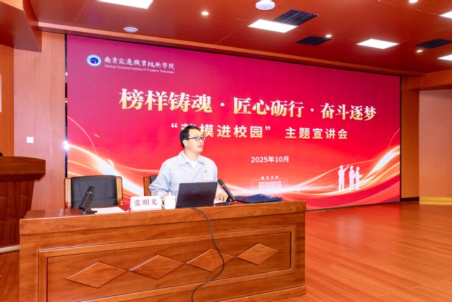 为大力弘扬劳模精神、工匠精神,充分发挥劳模工匠在立德树人过程中的精神引领与榜样示范作用,10月29日下午,学院在明德楼报告厅举办了“劳模进校园”主题宣讲活动。活动特邀江苏省杰出青年岗位能手、南京市劳动模范、南京市技术能手、江苏金陵机械制造总厂产品工程师张明光走进校园,为师生带来一堂融合实战经验与创新思维的“行走的思政课”。报告厅座无虚席,现场气氛活跃。