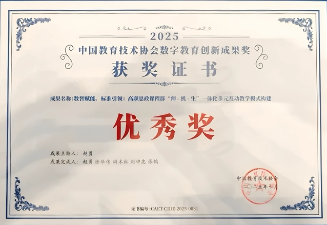 近日,我校在数字教育创新实践中再添佳绩:《数智共生人机共育——利用现代信息技术重塑教育新生态》成功入选“江苏省高校教育信息化优秀案例”,《数智赋能,标准引领:高职思政课程群“师-机-生”一体化多元互动教学模式构建》斩获“中国教育技术协会数字教育创新成果奖”,两项荣誉的获得,标志着我校教育数字化转型工作迈入特色化、高质量发展新阶段。