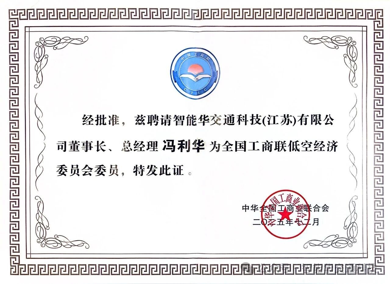 智能华交通科技(江苏)有限公司董事长、总经理冯利华获聘为委员会委员,体现了行业与主管部门对公司长期以来在低空经济领域技术积累、产业实践与创新贡献的充分肯定。