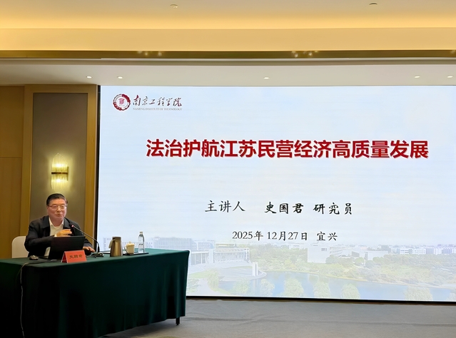 在第三阶段专家报告环节,省人大法制委员会副主任委员史国君围绕《法治护航江苏民营经济高质量发展》作专题分享。他结合多年地方立法实践,深入阐释法治建设在激发市场主体活力、规范企业合规经营、筑牢高质量发展制度根基中的重要作用,为校友企业把握政策方向、防范法律风险、实现行稳致远提供了权威解读与实践指引。