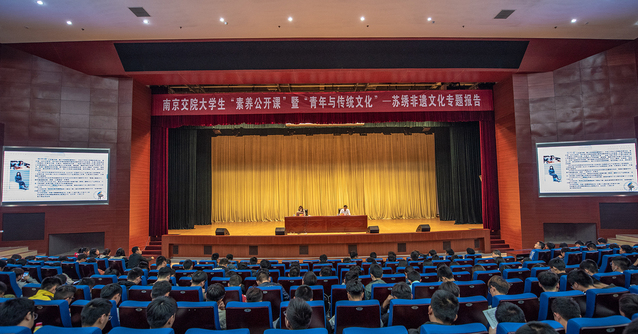 著名工艺美术师、苏绣世家第三代非遗传承人郁竹君老师受邀作了专题报告。郁老师从苏绣艺术的起源、沿革和现状、代表作品和大师、基本工艺、保护现状和发展趋势等方面作了系统详细的介绍,并结合自己与苏绣的“不解之缘”鼓励青年大学生热爱、弘扬、传承和保护祖国优秀的非物质文化遗产。