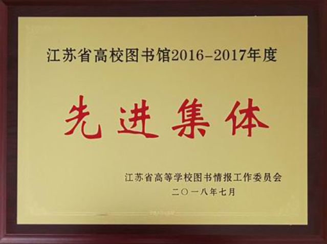 学院图书馆荣获“江苏省高校图书馆2016-2017年度”先进集体