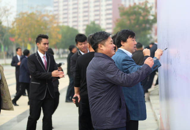 校友们在签名墙踊跃签名