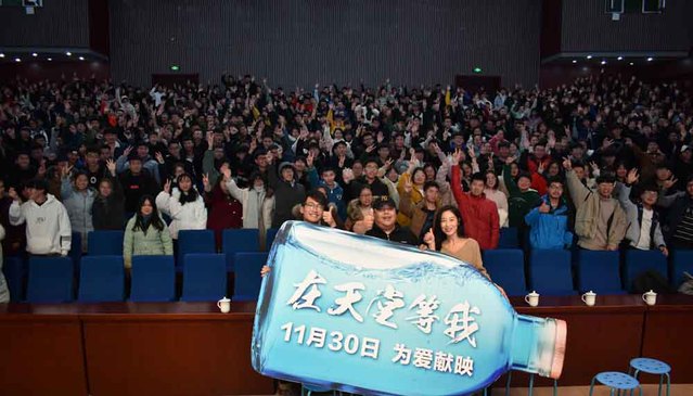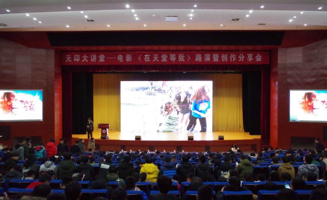 12月12日晚,“天印大讲堂”第八期活动在图书馆报告厅举行。本次活动的主题为电影《在天堂等我》路演暨创作分享,800余名师生现场观影并与影片主创人员交流互动。