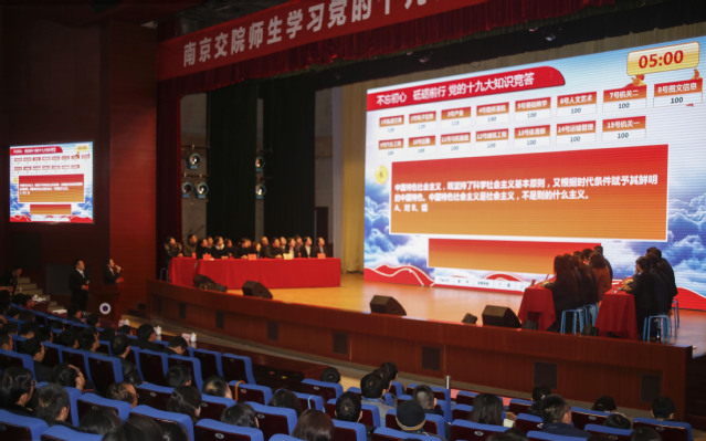 为激发全院师生进一步深入学习贯彻党的十九大精神的热情,用知识竞赛的形式检验一年来的学习成果,统一思想、凝聚力量,12月26日下午,由党委组织部、党委宣传部、工会共同举办的“不忘初心,砥砺前行”师生学习党的十九大精神知识竞赛在图书馆报告厅举办。
