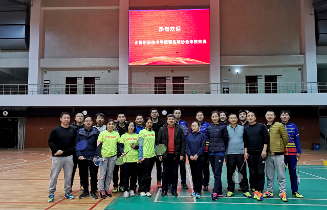 1月2日下午,正德职业技术学院教工羽毛球协会一行10人来院交流,与学院教工羽毛球队在行健馆进行了友谊赛。