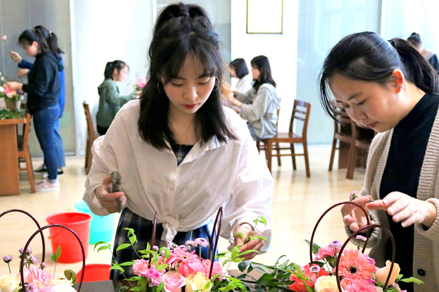 善款发放仪式上,学员们运用自己在学生资助管理中心花艺知识讲座上学到的插花技艺,亲手将寓意感恩之心、真挚之情的康乃馨制作成花艺作品表达衷心感谢,并表示,将把这份感恩之心化作学习的动力,不断完善自己,努力回报社会,不辜负学校和资助人的期望。