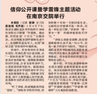 【新华报业网】学雷锋践初心 交通青年担使命——南京交通职业技术学院举办2026年信仰公开课暨学雷锋主题活动