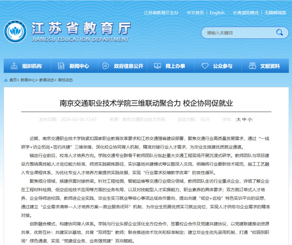 【江苏省教育厅官网】南京交通职业技术学院三维联动聚合力 校企协同促就业