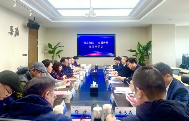 张毅书记一行随后来到江苏交通文化传媒有限公司参观交流。江苏交通文化传媒有限公司党总支书记、董事长夏继明详细介绍了公司的发展历程和主营业务。张毅书记介绍了南京交院的办学特色、专业建设与人才培养工作成效。艺术设计学院院长王宁就专业设置与课程建设、校企合作与产教融合、人才培养与社会服务等情况作了介绍。教师代表分享了艺术设计类相关专业在校企协同育人工作方面的感受和经验。苏州鑫犇文化广告有限公司副总经理张长森、南京视网么AR创始人/CEO张帅分享了各自企业的发展理念、业务布局和产学研实践经验与成果。与会人员围绕校企合作路径、产教融合机制、文化产业协作、社会培训开展、实训基地共建等内容展开深入交流,并在资源共享、项目合作与人才培养等方面达成共识。