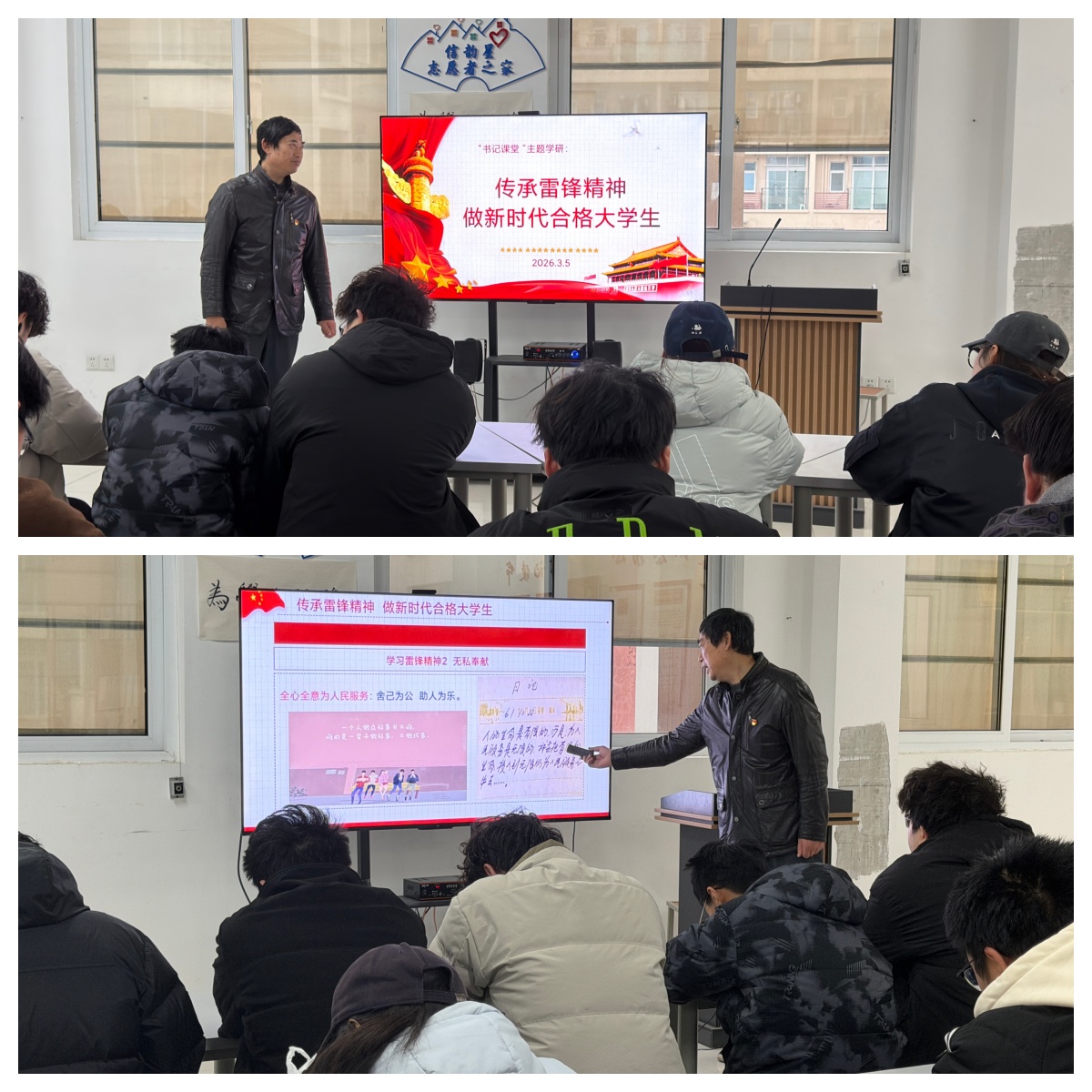 学习中,师生在共同回顾“向雷锋同志学习”等题词、重温《学习雷锋好榜样》歌曲的基础上,深入学习习近平总书记在毛泽东等老一辈革命家为雷锋同志题词60周年时的重要指示精神。我们围绕“坚定理想、无私奉献、爱岗敬业、创业奋斗”四个方面展开研讨,旨在进一步提升青年大学生的思想认识,并将学雷锋活动融入日常、化作经常。 此次学习活动进一步激发了同学们传承雷锋精神的热情,大家纷纷表示要将雷锋精神内化于心、外化于行,为实现中华民族伟大复兴贡献青春力量。