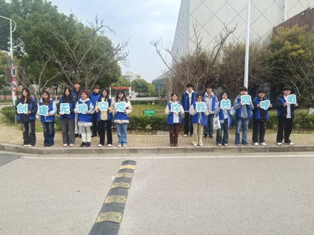 志愿者们身着志愿马甲,手持垃圾夹、垃圾袋,分组对校园主干道、绿化带、教学楼周边及卫生死角进行“地毯式”清理。大家分工协作、耐心细致,不放过草丛、砖缝中的烟头与零散垃圾,以实际行动守护校园洁净。同时,志愿者还开展“无烟教室”主题宣传,通过展板、海报展示二手烟对办公环境的危害,引导同学们在教学和生活场所远离烟草。