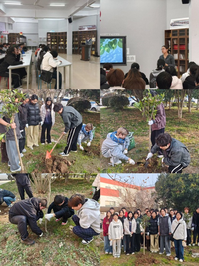 本次活动分为“知绿·爱绿”知识问答与“植此青绿”植树实践两大板块。在“知绿·爱绿”环节,同学们在一站式学生社区通过必答、抢答及趣味科普等形式,学习了植树节历史、树木价值及环保知识,答对者获赠“绿植种子盲盒”等奖励,将绿色理念带回宿舍。随后,同学们转场至劳动教育基地,在专业指导下分组协作,严格按照“三埋两踩一提苗”的技术要领栽种树苗,并悬挂“认养牌”建立长期管护责任,现场秩序井然。