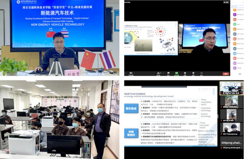 Liu Yiguan, director of the teaching and research section of the School of Automotive Engineering of Nanjing Vocational and Technical College of Communications, is the teacher of this training. He shared the topic Development of China's New Energy Vehicle Industry and Vocational Education Exploration for Thai teachers and students, and systematically analyzed the current situation of China's new energy vehicle industry, Core technology status, development trend of new energy vehicle technology, industry job demand, and exploration of the construction of new energy vehicle technology specialty of Nanjing Vocational and Technical College of Transportation. The content of the thematic sharing was vivid and full, which was well received by the students. At the training meeting, Thai teachers and students had in-depth interactions and exchanges with Mr. Liu Yiguan, and discussed issues such as the application of new energy vehicle technology, the college's new energy vehicle construction achievements, and the direction of graduate training.