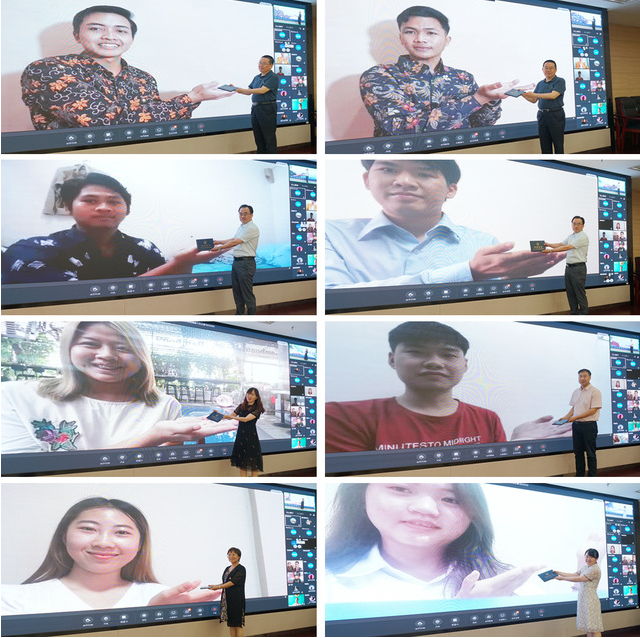 In the warm applause, Secretary Jia issued a graduation certificate to the international students at home and abroad, and the teacher representatives also awarded the graduation certificate to the online students on the screen.