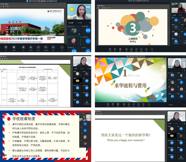 With the adjustment of China's entry policy, the international students of the college can't wait to see each other from meeting in the cloud to meeting offline as soon as possible. In order to ensure the safe and orderly return of international students to school, help them better understand the current domestic entry policies and school rules and regulations, and successfully complete the online and offline learning in the transition phase, the International Cooperation and Exchange Office organized and held the online theme class meeting of the first lesson for international students on February 18-19.The head teachers of the international students in 2020, 2021 and 2022 met with the students across the border, and the international students expressed their best wishes for the new year to the Chinese teachers.