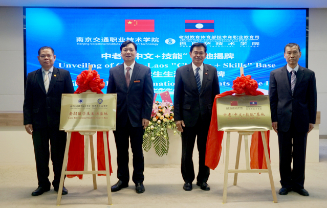 In a warm and friendly atmosphere, Deputy Director Saikang Pantaong and Researcher Yu Weidong unveiled the plaque for the Chinese+Skills base in China and Laos. Dean Wang Daofeng and President Saisamon Engamsi signed a friendly cooperation agreement on behalf of both parties and unveiled the plaque for the source base of Laotian international students.