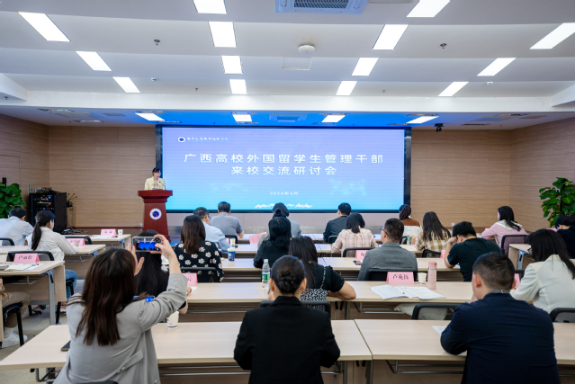 On the morning of April 26th, more than 30 management officials from 24 universities in Guangxi came to China for exchange and visits. Vice Dean Liu Xuefen attended the event, and the International Cooperation and Exchange Office participated in the exchange and discussion. The meeting was chaired by Yuan Qian, Director of the International Cooperation and Exchange Office.