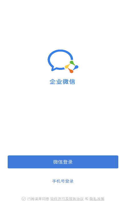 2、手机端登录:打开手机企业微信APP,界面如下: