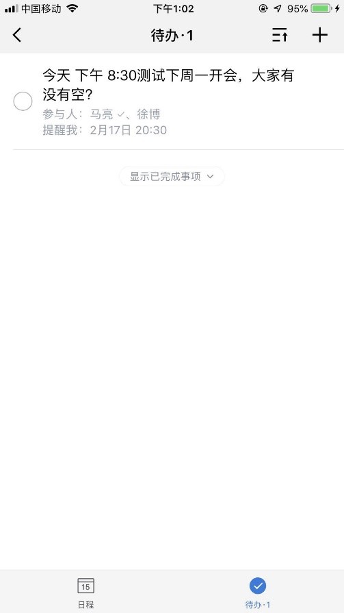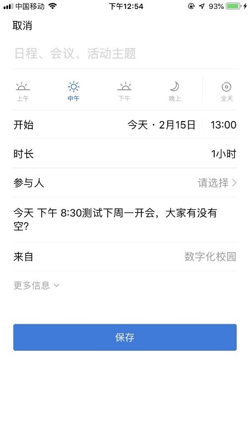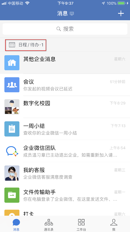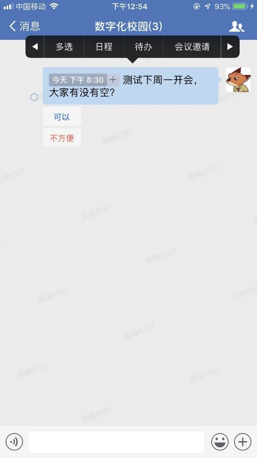 长按发布到群里的约时间的消息,会出现附加功能菜单,可选择“日程”,保存到“日程/待办”中,在消息界面可以查看,如下图所示:
