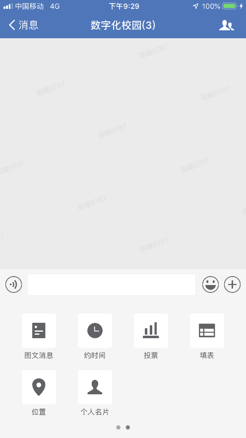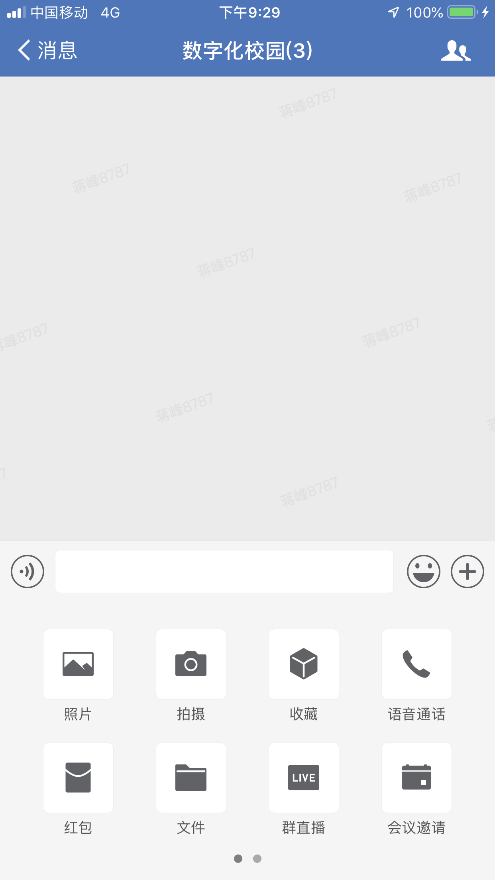 功能包含:“照片”、“拍摄”、“收藏”、“语音通话”、“红包”、“文件”、“群直播”、“会议邀请”、“图文信息”、“约时间”、“投票”、“填表”、“位置”、“个人名片”。下面介绍下主要功能: