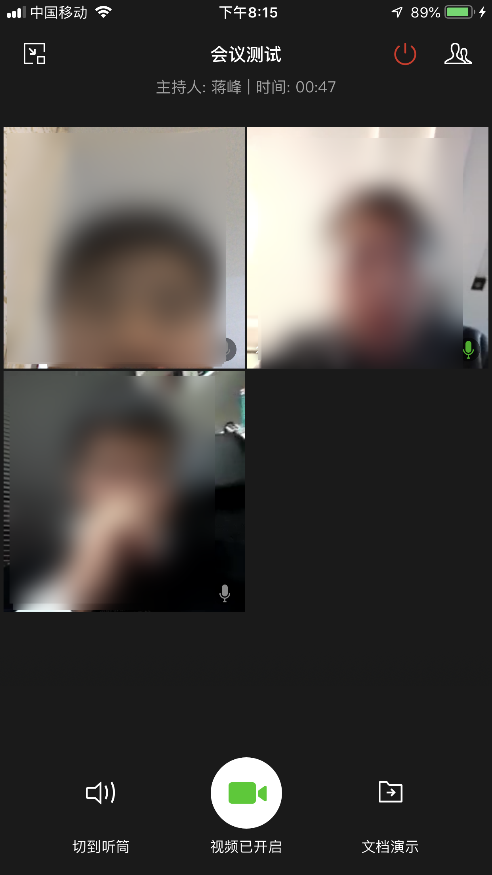 到会议预约的时间,系统自动发起视频会议或者语音会议。界面如下: