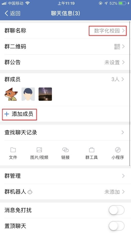 群建好后,可以修改群名称,也可以添加成员等。