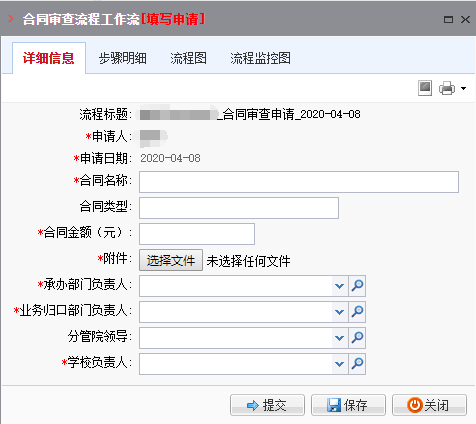 (4)审核人由申请人按照分管限额选择,需要承办部门负责人、业务归口部门负责人、分管校领导、学校负责人审核的,选择相应领导。