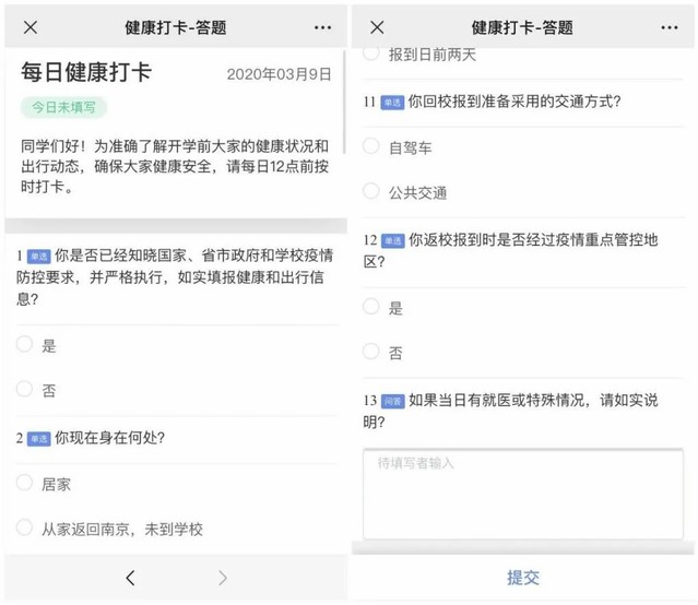 为做好开学返校前的疫情防控工作,全面掌握学生身体健康状况、出行动态、返校安排,为老师组织返校接待工作做好充分准备,学院开发了学生健康上报系统,为全校11253名学生提供健康报送服务。