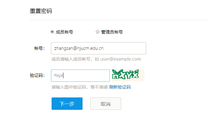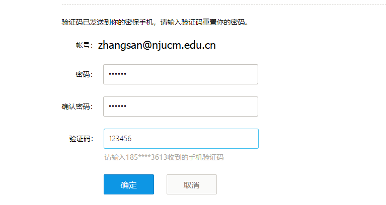 根据提示设置新密码,填写密保邮箱邮件中的验证码,点击“确定”,系统提示“重置密码成功”信息。