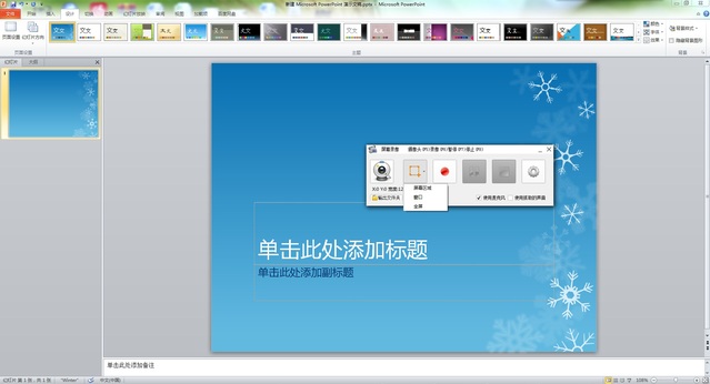 打开PPT,点第二个键,弹出三个选项,如果是录制全屏则选“全屏”,如果只录某一个窗口,则选“窗口”,然后单击那个窗口,会有一个红色方框出现一下就选择成功了。